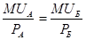 Потребительское равновесие достигается, когда отношения предельных полезностей отдельных товаров к их ценам равны. Обозначив предельную полезность через MU, получим равенство: