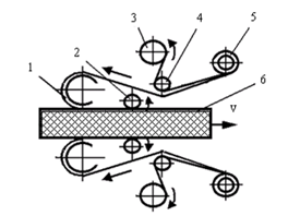 и прижимающих фоторезист к поверхности заготовок, валиков 3