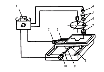 Координатограф (рис. 6) состоит из вакуумного стола 8