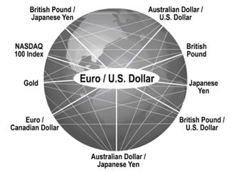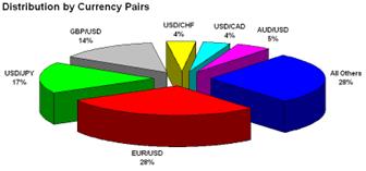 Основная функция рынка Forex - обеспечивать эффективный механизм международных платежей и определять курсы обмена валют. Торговля на этом рынке осуществляется через одновременную покупку одной валюты и продажу другой (так называемая "валютная пара"). И хотя на рынке обменивается большинство валют, львиную долю рынка занимают доллар США и четыре других валюты: евро (EUR/USD), японская иена (USD/JPY), британский фунт (GBP/USD) и швейцарский франк (USD/CHF).