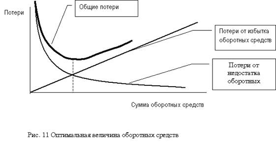 Для предприятия важно правильно определить оптимальную потребность в оборотных средствах, что позволит с минимальными издержками получать прибыль, запланированную при данном объеме производства. (рис.11)[2]