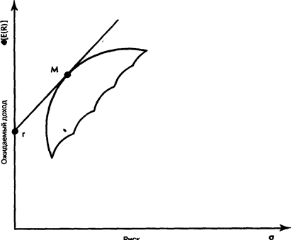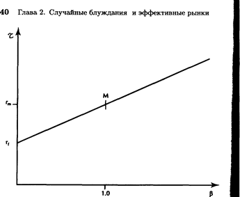 Здесь уже много раз упоминались различные исследования по поводу САРМ. Наиболее известным является тест Блэка, Дженсена и Шоулса (Black, Jensen, Scholes, 1972), который стал стандартом для тестов теории рынка капиталов. Эти авторы конструировали портфели с различными уровнями бета, чтобы разобраться в том, может ли быть подтвержден эмпирически компромисс между риском и прибылью, описываемый САРМ. В частности, они сравнили форму реализации SML (линии рынка ценных бумаг) с тем, что было предсказано теорией. SML (рис. 2.3) показывает зависимость ожидаемой прибыли от бета ценной бумаги. Поскольку, согласно САРМ, инвесторы не компенсируются в отношении нерыночного риска, все ценные бумаги должны лежать на SML. SML есть линия, которая берет начало на безрисковой ставке процента и проходит через точку, соответствующую рыночному портфелю. Каждая ценная бумага лежит на этой линии в соответствии со своей бета, или чувствительностью к рыночным прибылям (см. рис. 2.3). В своем исследовании Блэк, Дженсен и Шоулс использовали реальные прибыли, а не ожидаемые - чтобы удостовериться, действительно ли реализованная SML совпадает с теорией.