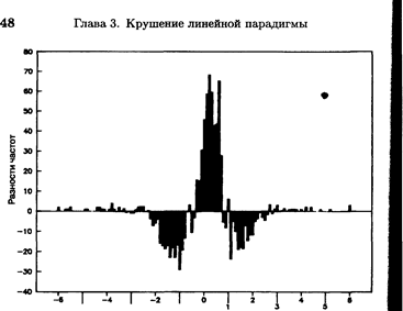 выдается сгустками? Если инвесторы игнорируют информацию до тех пор, пока тренды не установятся и затем откликаются, принимая в расчет всю до того накопившуюся информацию, - вот тогда и могут возникать толстые хвосты. Это означает, что люди реагируют на информацию нелинейно. Стоит только ей перешагнуть некоторый критический уровень, и начинает сказываться все ее совокупное влияние, которое до того не влекло за собой никаких последствий. За этим скрывается не что иное как влияние прошлого на настоящее и, следовательно, полный крах ЕМН. Ибо в ЕМН информация и отклик на нее находятся в жесткой причинно-следственной связи, как бы в ньютоновой физике - информация получена и сразу отражена в ценах.