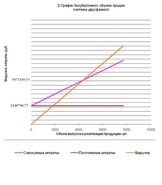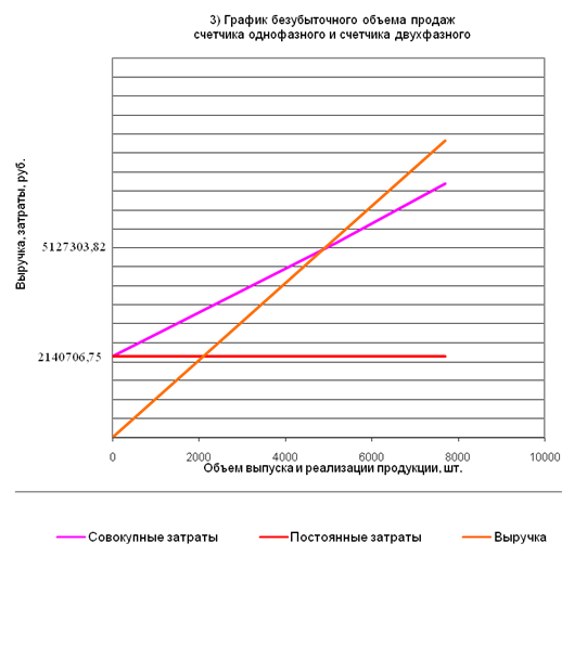 Были рассчитаны показатели хозяйственной деятельности условного предприятия, выпускающего два вида изделий: счетчик однофазный и счетчик двухфазный. Определены сумма инвестиций в основной капитал, сумма амортизационных отчислений, рассчитаны себестоимость единицы продукции, объемы товарной и реализованной продукции, норматив оборотных средств, показатели экономической эффективности производства и, наконец, найден объем производства изделий, при котором прибыль равна затратам производства. При определении данного объема было предусмотрено три ситуации: когда производится только либо счетчик однофазный, либо счетчик двухфазный, а также одновременное производство обоих счетчиков.