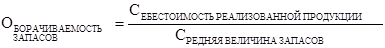 Поскольку производственные запасы учитываются по стоимости их заготовления (приобретения), то для расчета коэффициента оборачиваемости запасов используется не выручка от реализации, а себестоимость реализованной продукции. Для оценки скорости оборота запасов используется формула: