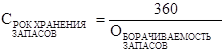 Срок хранения запасов определяется по формуле: