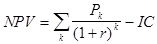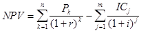 Этот метод основан на сопоставлении величины исходной инвестиции (IC) с общей суммой дисконтированных чистых денежных поступлений, генерируемых ею в течение прогнозируемого срока. Поскольку приток денежных средств распределен во времени, он дисконтируется с помощью коэффициента r, устанавливаемого аналитиком (инвестором) самостоятельно исходя из ежегодного процента возврата, который он хочет или может иметь на инвестируемый им капитал.