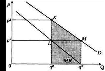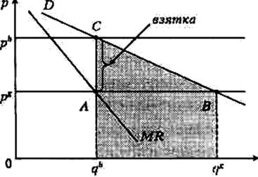 отдает правительству («коррупция без кражи»), то общественное благосостояние неизбежно снижается на величину, равную площади фигуры qb