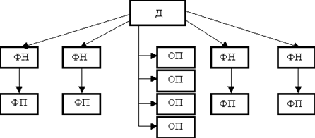 Д- директор; ФН - функціональний начальник; ФП - функціональні підрозділи; ОП - підрозділи основного виробництва.