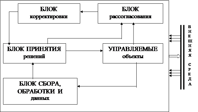 Наличие информации об изменениях внешней обстановки тем не менее еще не обеспечивает должной реакции со стороны организации. Таким образом, второе требование к организационной структуре фирмы заключается в том, что она должна предусматривать наличие центра (или центров) управления, куда поступали бы и где бы обрабатывались соответствующие данные (см. рис. 1.1 и 1.2).