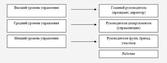 Исследование схем формальных организаций показывает, что существует уровень вертикального и горизонтального разделения труда. Схема вертикального разделения труда представлена на рис. 1.1.