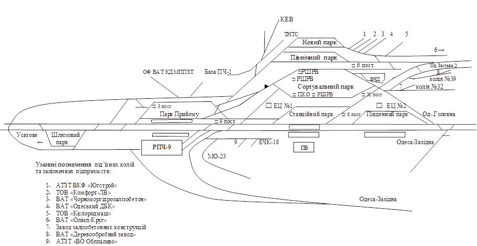 - 36 - приймально-відправна для приймання вантажних поїздів із станцій Одеса-Застава II, Усатове і Одеса-Західна через шляхопровід та відправлення вантажних поїздів в напрямку станцій Усатове і Одеса-Західна;