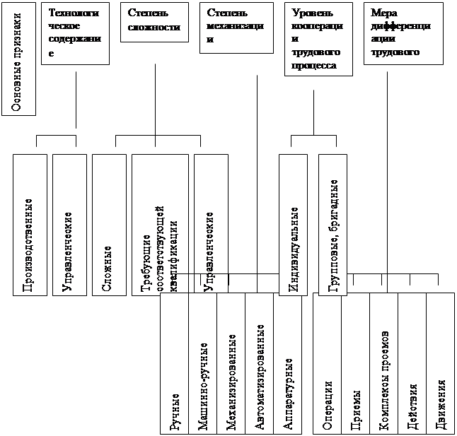 Трудовые процессы, выполняемые на предприятиях, классифицируются по ряду признаков (рисунок 2)