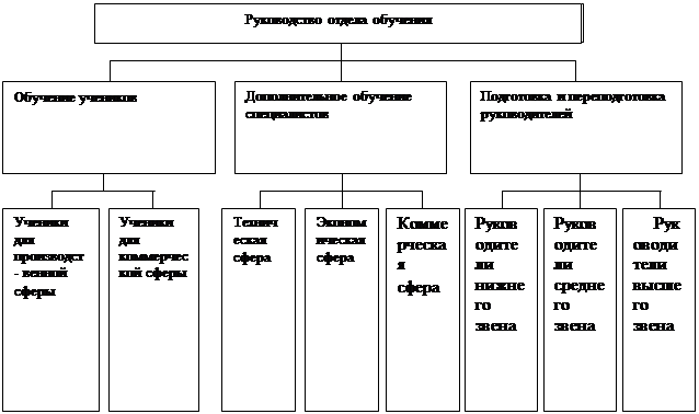 В крупных организациях наблюдается дальнейшее структурирование внутренних подразделений системы, например, подразделения в отделе обучения персонала (рис.8).