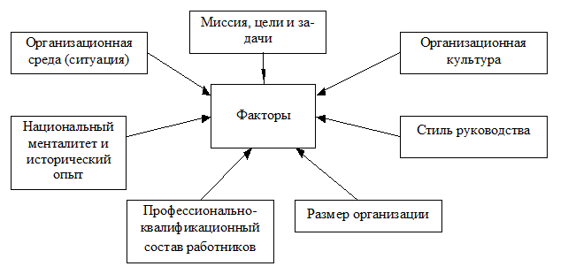 Социальные факторы, применительно к организации, выражают содержание изменений в условиях, образующих ее социальную среду, и адекватные этим изменениям последствия. Их различают прежде всего по направленности и формам воздействия на персонал как в пределах самой организации, где осуществляется совместный труд, так и в ближайшем ее окружении, где работники организации и их семьи живут.