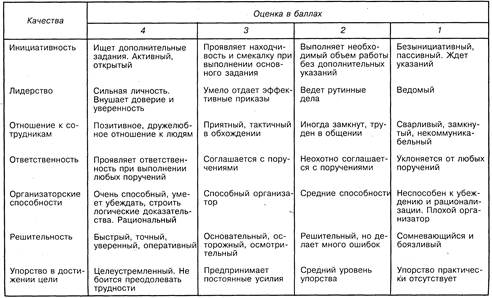 Многие зарубежные компании при конкурсном отборе инновационных менеджеров используют тесты соответствия качеств работника требованиям условий деятельности инновационного управляющего. Важнейшими качествами при отборе конкурсантов являются организаторские способности, опирающиеся на логико-дидактические навыки, инициативность, целеустремленность, упорство в достижении целей. Наиболее высокую оценку получает тот кандидат, в котором лидерство сочетается с высокой ответственностью, дружелюбным отношением к окружающим, а оперативность и точность - со своевременностью принимаемых решений. Примерный тест на соответствие качествам, требующимся от инновационного менеджера, приводится в табл.1.: