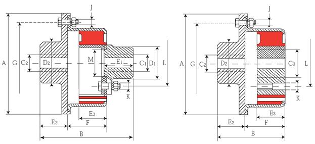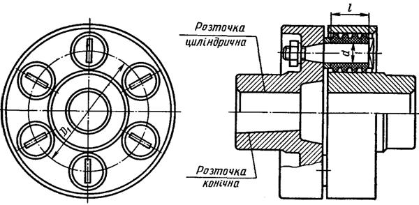 центральним отвором , встановлений на пальцях між напівмуфтами, пружний диск має зовнішній 5