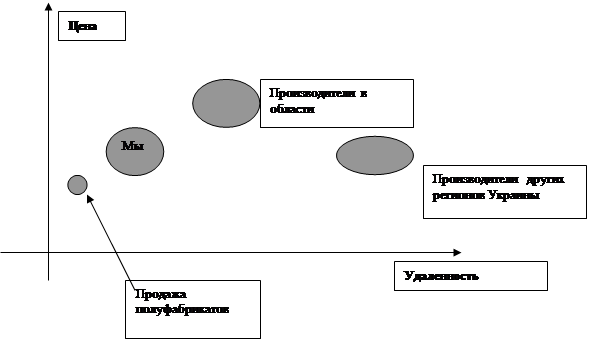 С этой точки зрения позицию нашего товара в данном сегменте можно представить в таком виде: