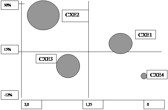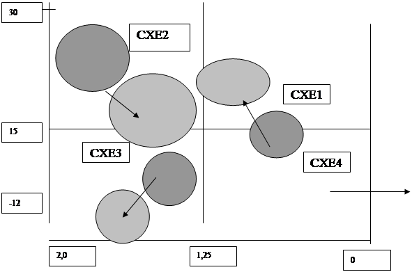 Анализируя матрицу можно определить, что в портфеле фирмы имеются все четыре вида СХЕ, которые определяются по матрице БКГ: