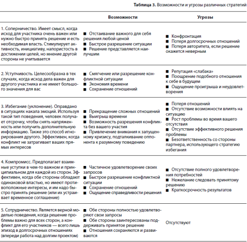 Рассмотрим возможности и угрозы каждой из вышеописанных стратегий (табл. 3).