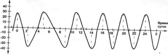 Наиболее важен для человека суточный ритм — «день—ночь». В этом ритме изменяются почти 50 человеческих функций (рис. 6).