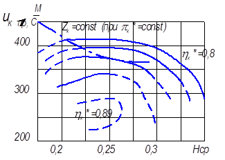 Средняя приведённая окружная скорость существенно влияет на выбор числа ступеней. Однако её выбор и, следовательно, выбор числа ступеней необходимо производить с учётом влияния окружной скорости на КПД компрессора з*К