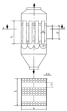 Розрахунок батарейного циклону здійснюється на підставі даних про витрати повітряного потоку Q0 при температурі 0°С, оптимальної швидкості руху газу в корпусі батарейного циклону Vопт , температурі газу t, тиску в розподільчій камері Р, питомої ваги газу при 0°С.