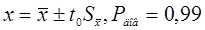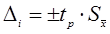 Для m-n=5 та ймовірності Р=0,95 коефіцієнт Стьюдента tp = 2,571