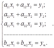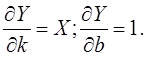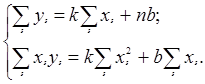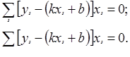 Необхідно знайти два невідомі параметри k й b, опрацьовуючи набори результатів спостережень {х,} та {у,} за методом найменших квадратів. Сформуємо відповідні рівняння, а саме: знайдемо часткові похідні функції Y за невідомими параметрами