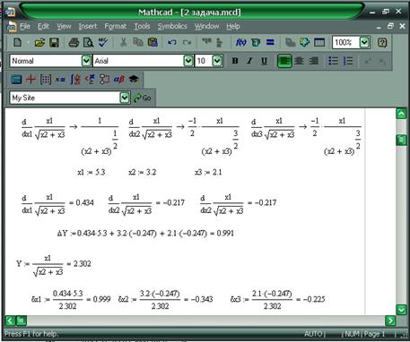 Розрахунок значень завдання 2 за допомогою математичного пакету Mathcad
