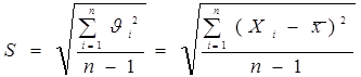 — обчислити середнє квадратичне відхилення результатів вимірювання за формулою Бесселя: