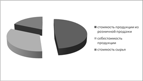 Себестоимость продукции складывается из разнообразных по своему экономическому назначению затрат. Наибольшая доля в затратах на производство промышленной продукции приходится на сырье и основные материалы, а затем на заработную плату и амортизационные отчисления. По данным производства и продаж ОАО "Ликеро-водочный завод "Хабаровский" можно рассчитать стоимость сырья в единице стоимости продукции из розничной продажи.