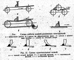 (Рис. 4) Схема грунтовальных ножей: а — с тонкой острой фаской; б — с круглой фаской; в — с серповидной фаской; г — с заточенной фаской