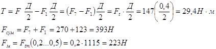 На натяжное устройство действует крутящий момент Т и сила Fсум