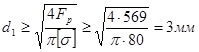 Из условия прочности на растяжение винта определяем внутренний диаметр резьбы: