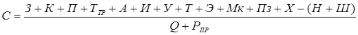 Себестоимость продукции С определяют делением суммы всех затрат за вычетом стоимости побочной продукции на общее количество продукции.