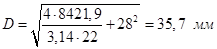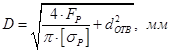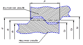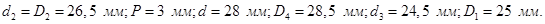 - наружный диаметр резьбы, ;