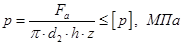Основным критерием работоспособности передач с трением скольжения является износостойкость, оцениваемая по значению среднего давления в резьбе: