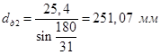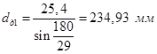 Делительные диаметры звездочек: