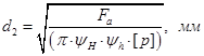 где - допустимое среднее давление в резьбе, так как материал гайки и, следовательно, резьбы серый чугун, то .