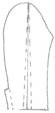 Спинка – со средним швом, заканчивающийся шлицей и несколько смещенными в сторону боковыми швами.