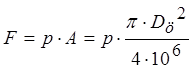 2) Давление жидкости в цилиндре выбираем по полезной нагрузке:
