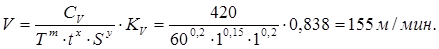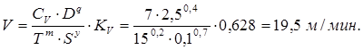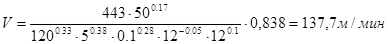 V = *D* nф/1000 = 3,14*50*800/1000 = 125,6м/мин.