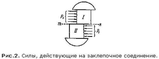 Заклепочные соединения образуют постановкой заклепок в совмещенные отверстия соединяемых элементов и расклепкой с осаживанием стержня заклепки стягивают детали, в результате чего часть, а иногда и вся внешняя продольная нагрузка на соединение передается силами трения на поверхности стыка [16].