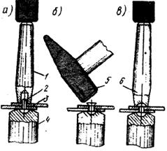 Рис. 3. Взрывная заклёпка: а — до установки; б — после выполнения соединения.