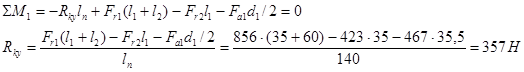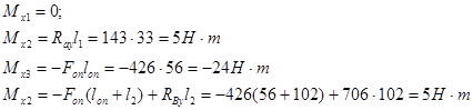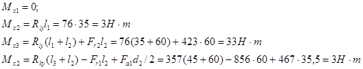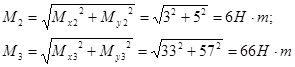 Определяем суммарные изгибающие моменты в наиболее нагруженных сечениях: