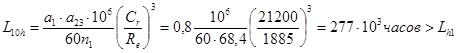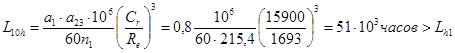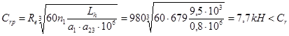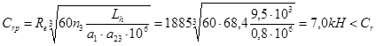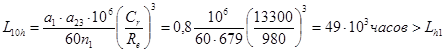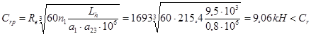 По таблице находим: e=0,14 Y=2,6; по соотношению выбираем формулу и определяем эквивалентную динамическую нагрузку наиболее нагруженного подшипника: