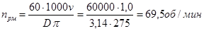 - номинальная частота вращения вала электродвигателя, об/мин;