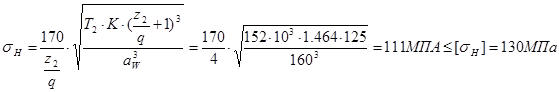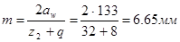Принимаем по ГОСТ 2144-76 стандартные значения m=8 и q=8, тогда межосевое расстояние будет равно