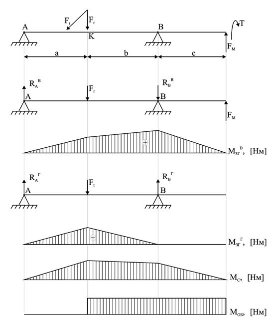 5.2 Визначаємо реакції в опорах вала (н):